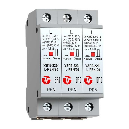 Тахион УЗП2-220К/3L-PEN/20 Трехполюсное устройство защиты ограничительного типа класса испытаний II